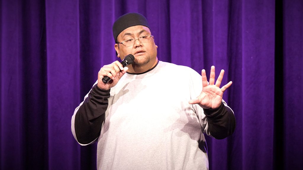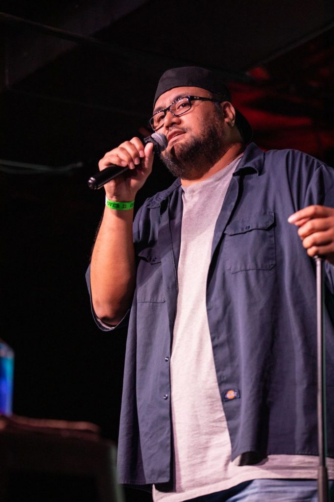 Photos of comedian James Mane performing stand-up comedy, appearing in podcasts, and performing at venues across Hawaii and the continental United States.